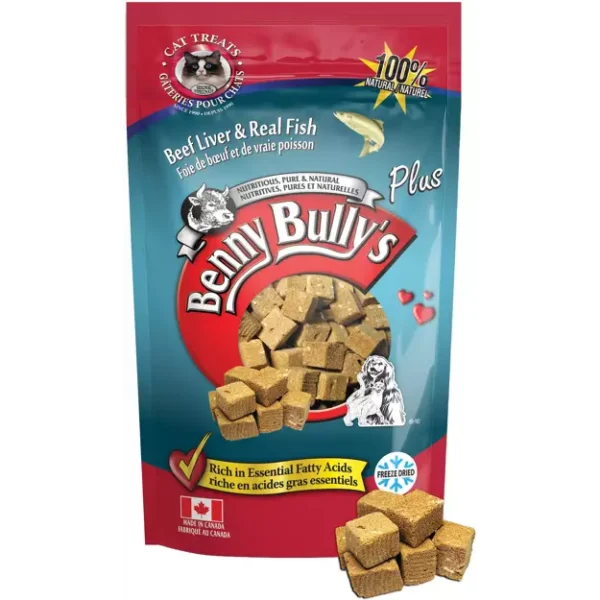 - Cat owners have discovered Benny Bullys Cat Treats as a nutritious, pure and natural alternative to traditional cat treats. Our new functionally nutritious Plus line adds tasty ingredients with known nutritional benefits to our original Benny Bullys Liver Chops. Benny Bullys Plus White Fish offers cats a delicious blend of the natural nourishments found in real fish and beef liver.